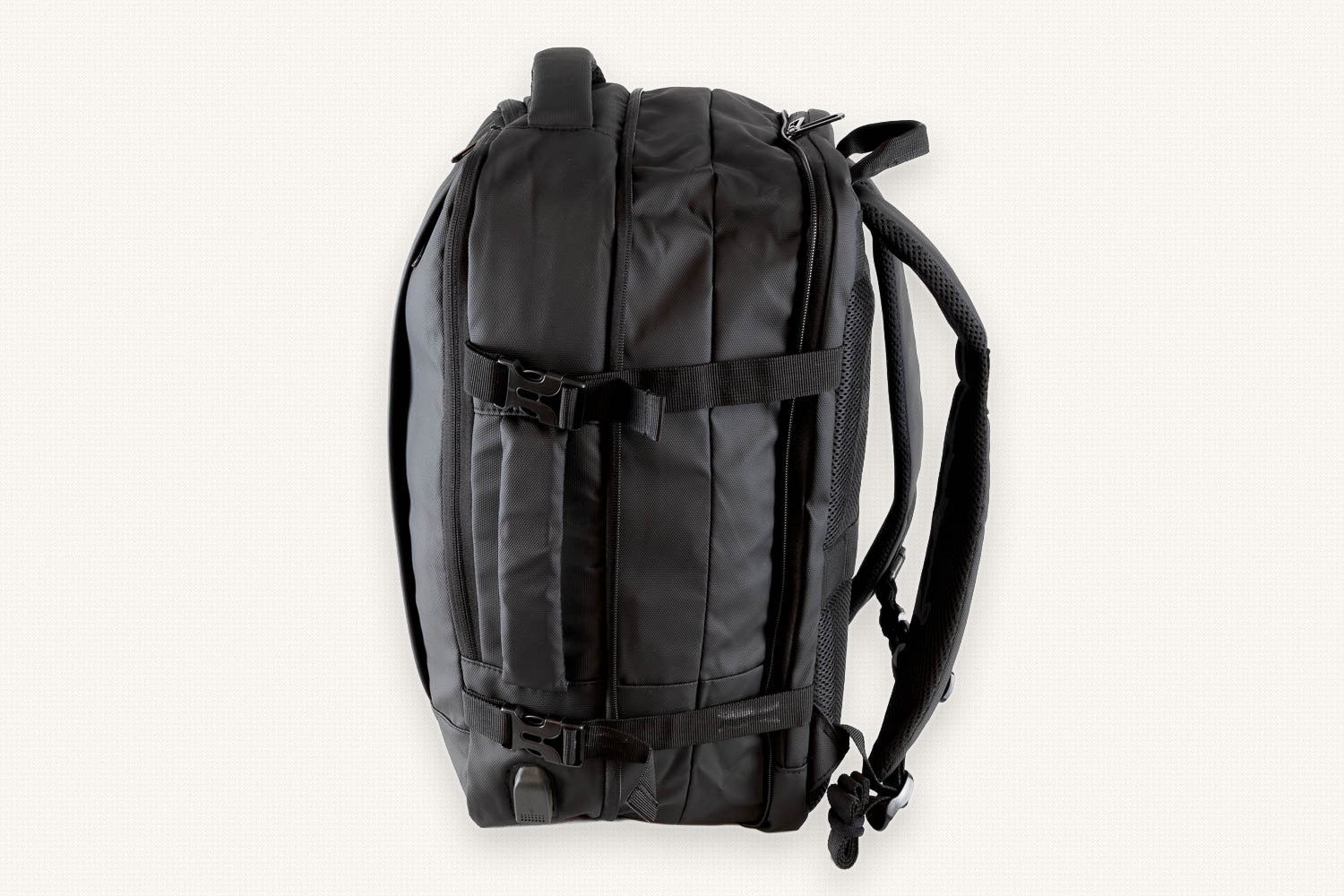 15-17" laptop, one to three nights of clothes, toiletry bag, charging cables, and daily carry. Expands from 22L to 44L so it handles both a day trip and a long weekend.