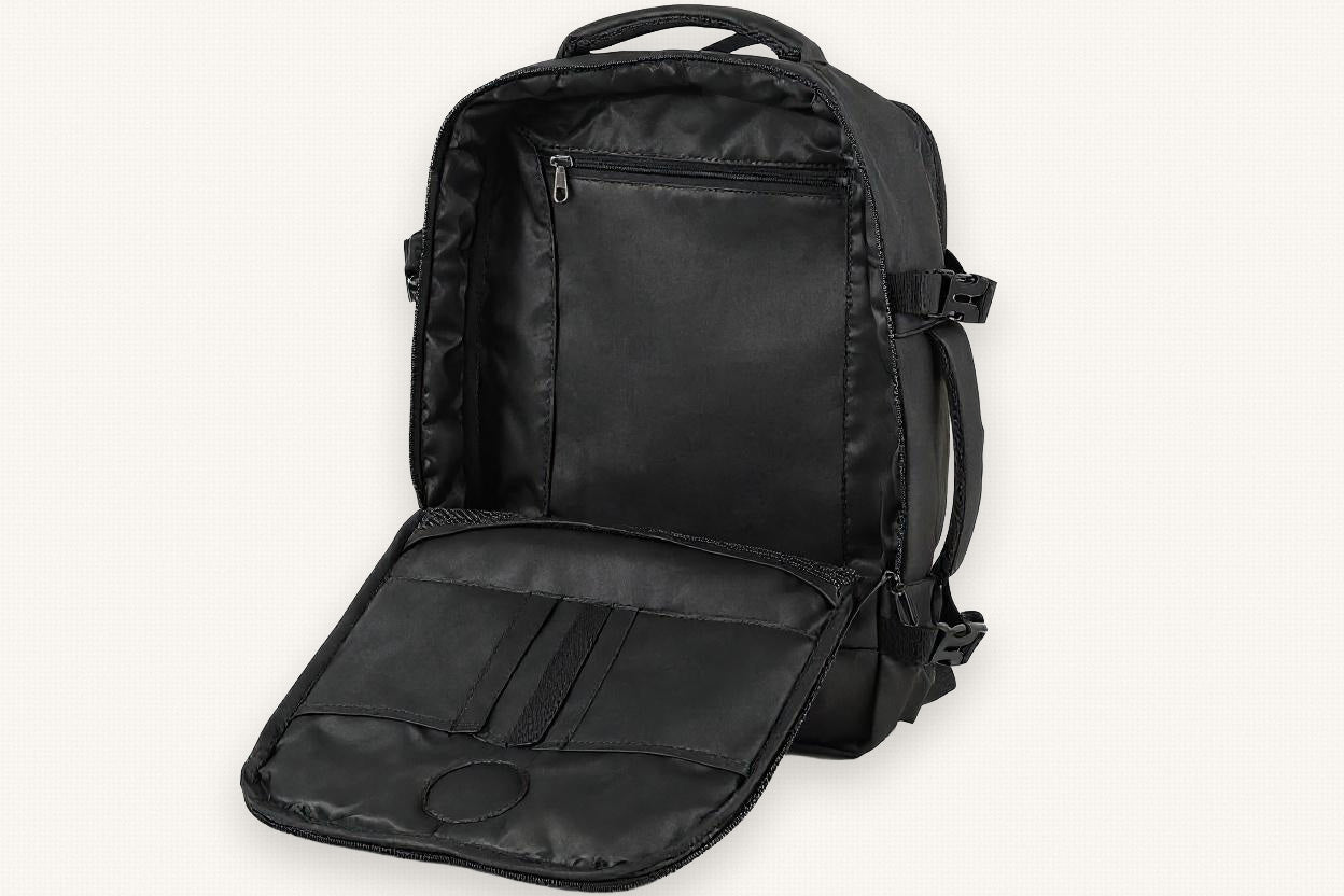 - Top pocket for security tray essentials (passport, wallet, boarding pass). Out in two seconds